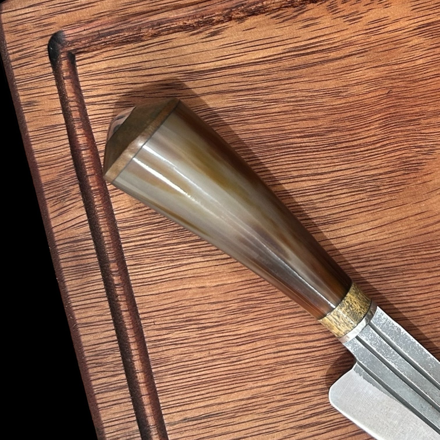 Presentamos nuestro cuchillo criollo, forjado en acero carbono 1070, conocido por su durabilidad y capacidad de corte excepcional. Con un elegante detalle de tres listas, este cuchillo no solo es funcional, sino que también es una pieza de arte.