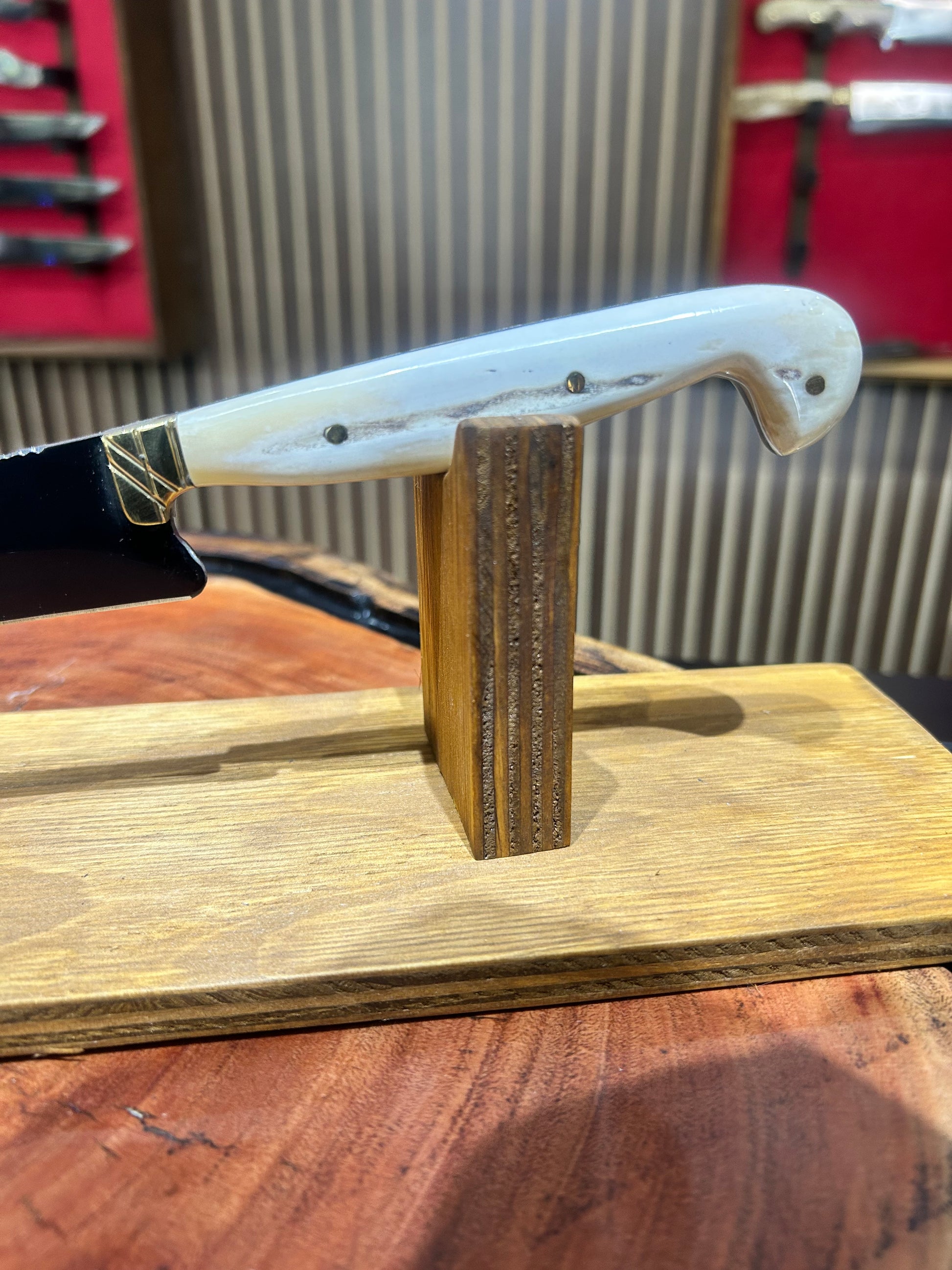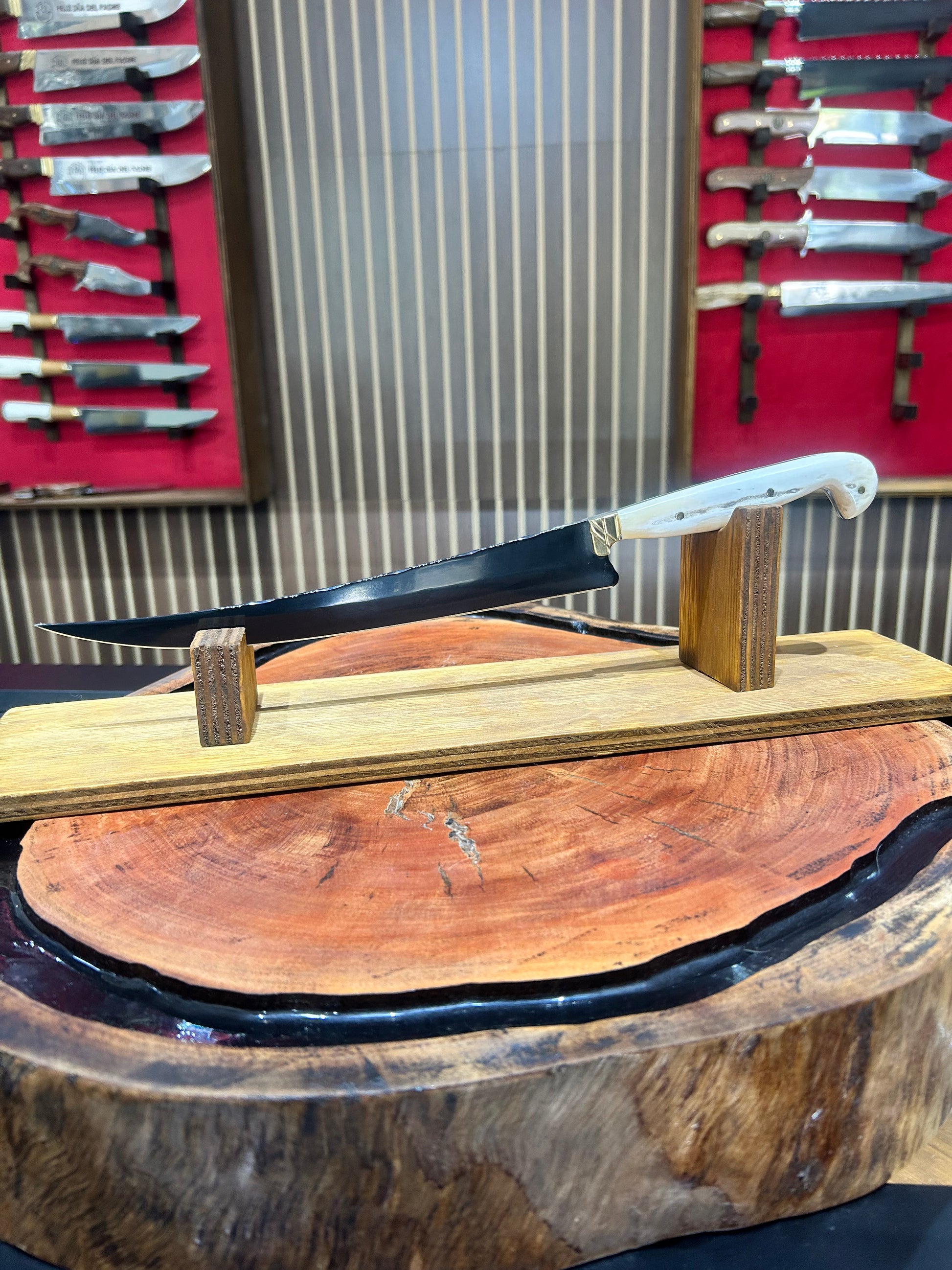 Para vos, que disfrutás de cada asado y valorás la excelencia en cada detalle, te presentamos el cuchillo deshuesador que va a despertar tu deseo de ser el mejor asador. Fabricado en acero carbono fosfatizado, con un mango chato en hueso y un elegante botón de bronce, este cuchillo no solo es una pieza de arte, sino que también ofrece un filo excepcional. Además, viene acompañado de una vaina de cuero, lista para acompañarte en cada encuentro.