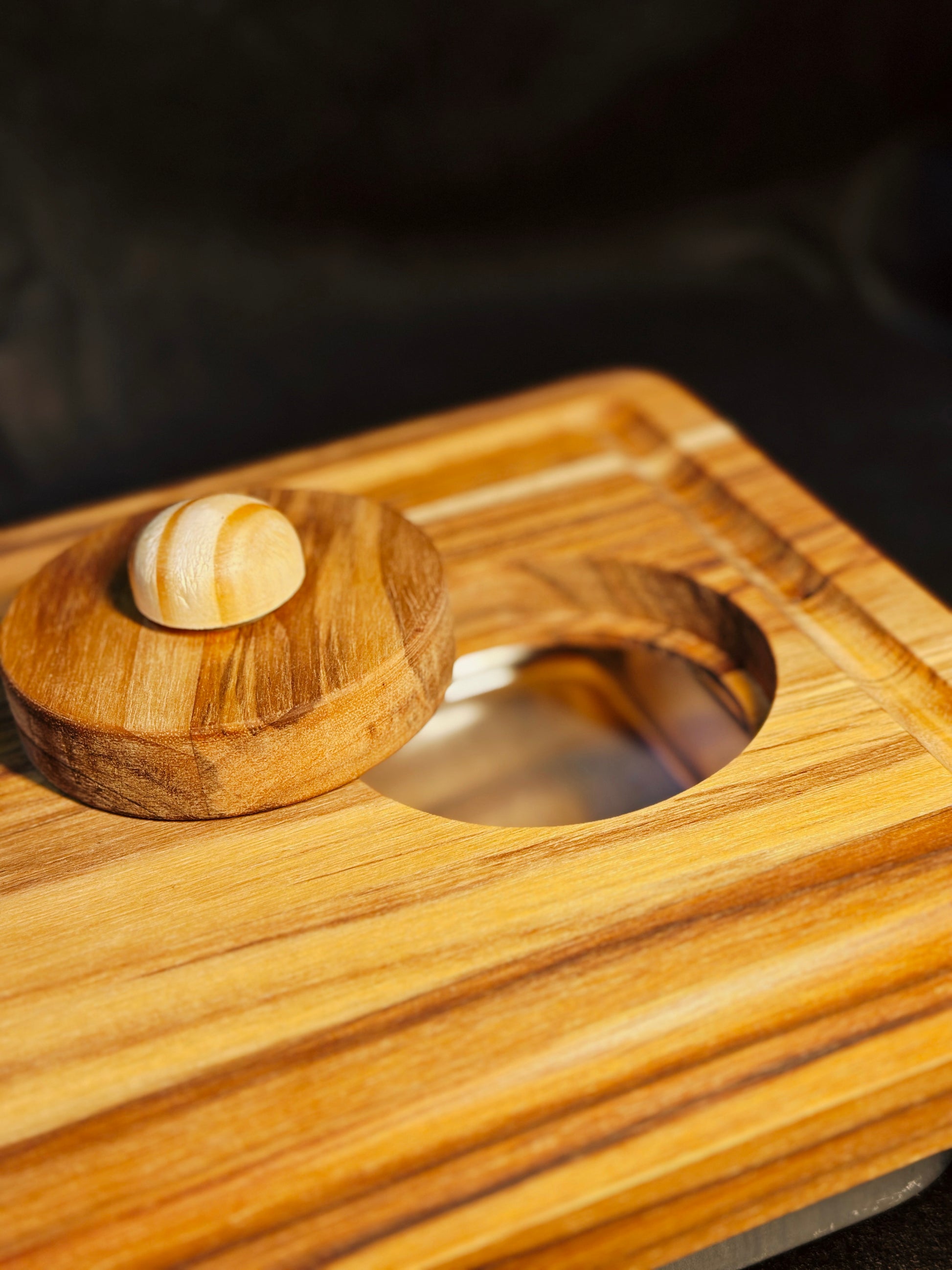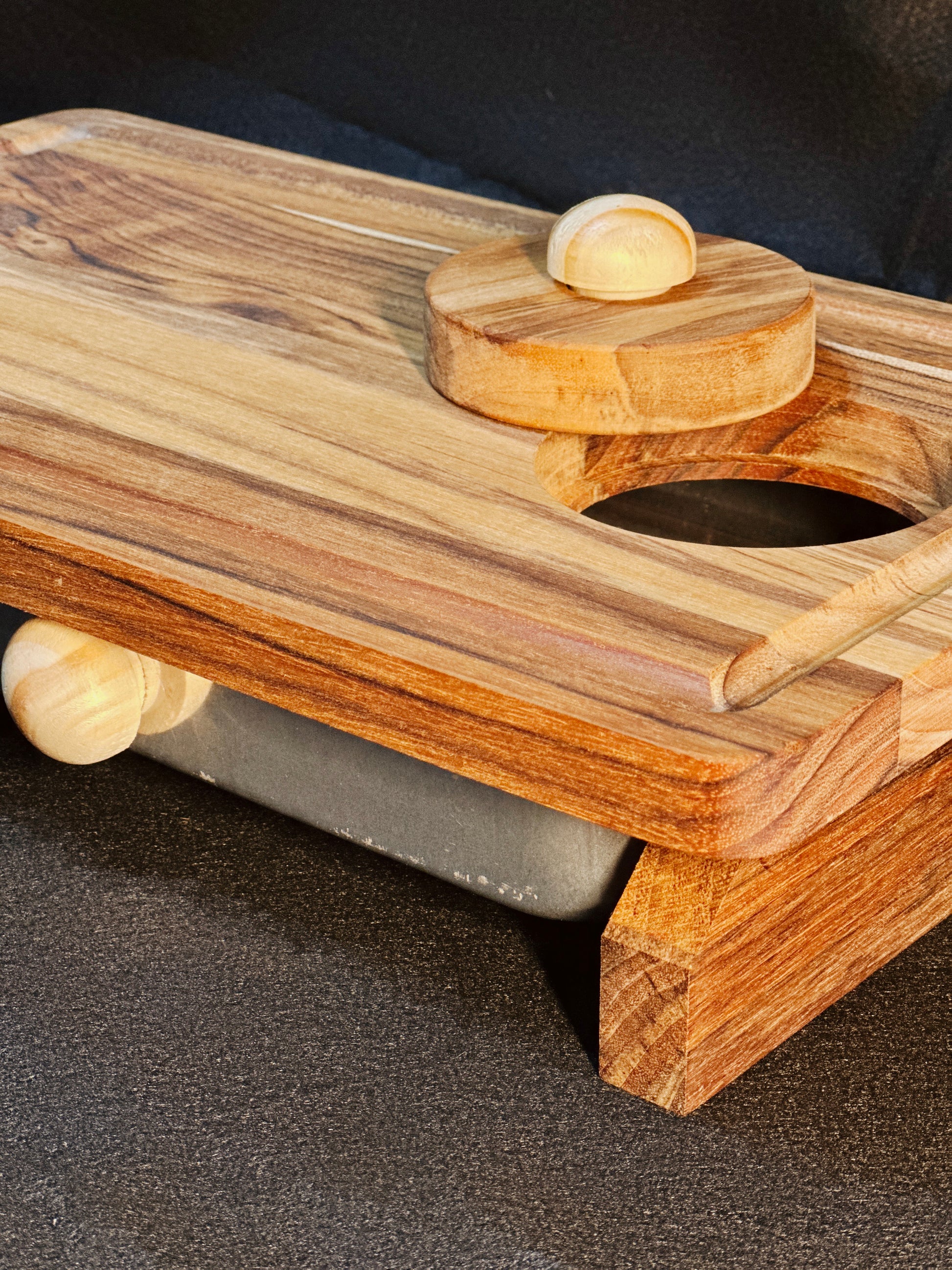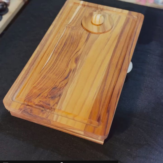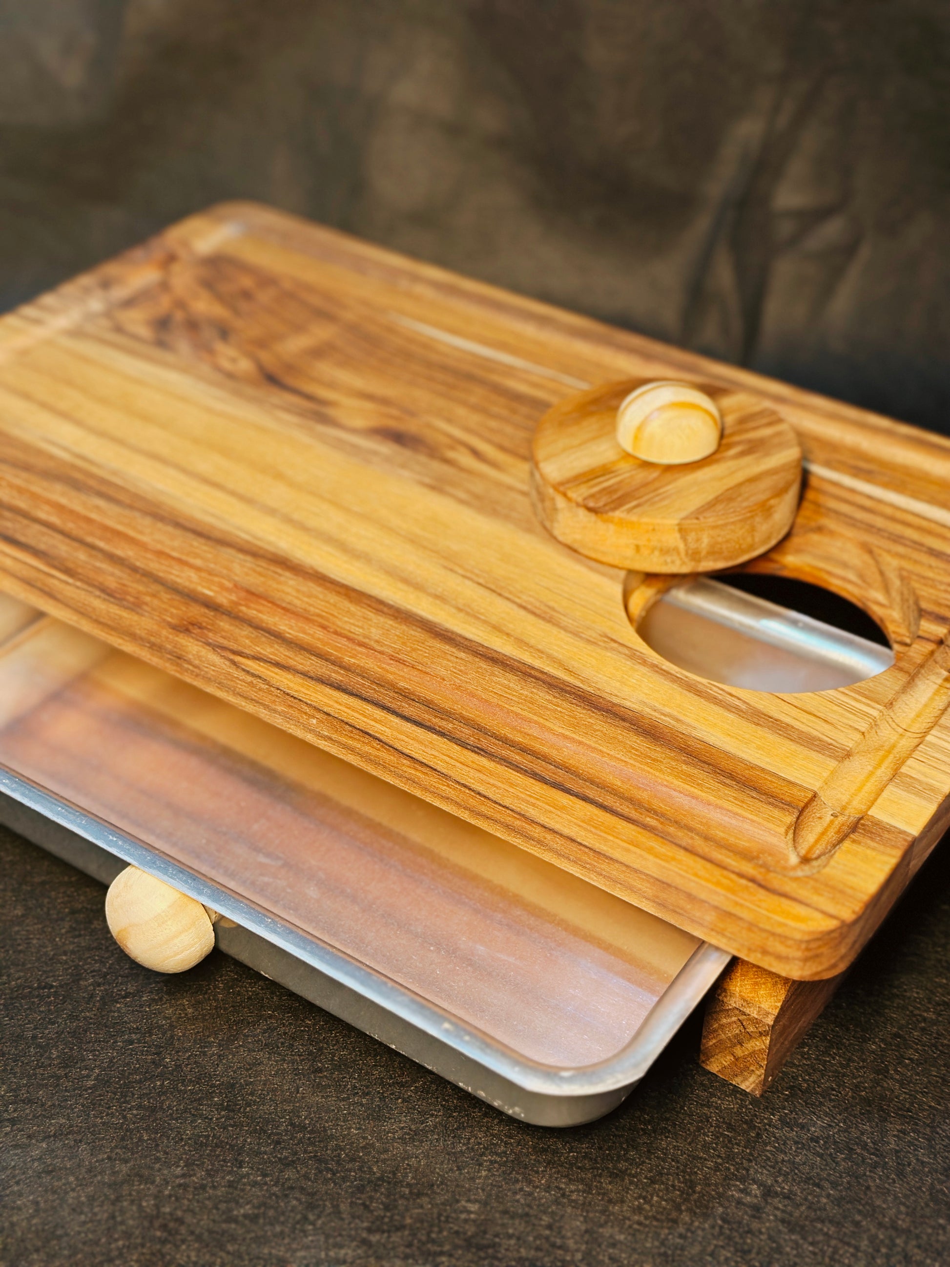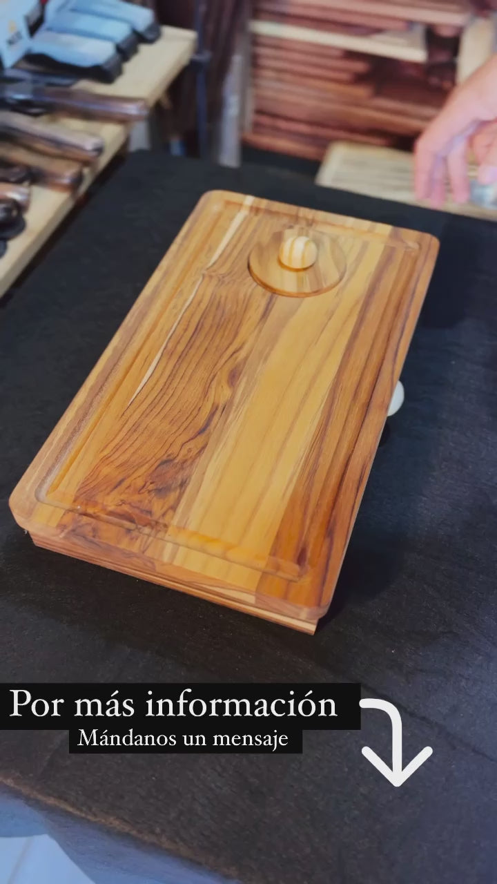 Tabla Inteligente, una tabla con muchas funciones. Con este utensilio, usted va poder cortar el alimento en ella, colocar en la bandeja y servirlo en la mesa o trasportarlo a donde bien lo desee. También la bandeja puede ser utilizada para colocar los restos de alimentos que en la tabla se va cortando. Incluye grabado de nombre o iniciales. Seleccione el grabado que desee.