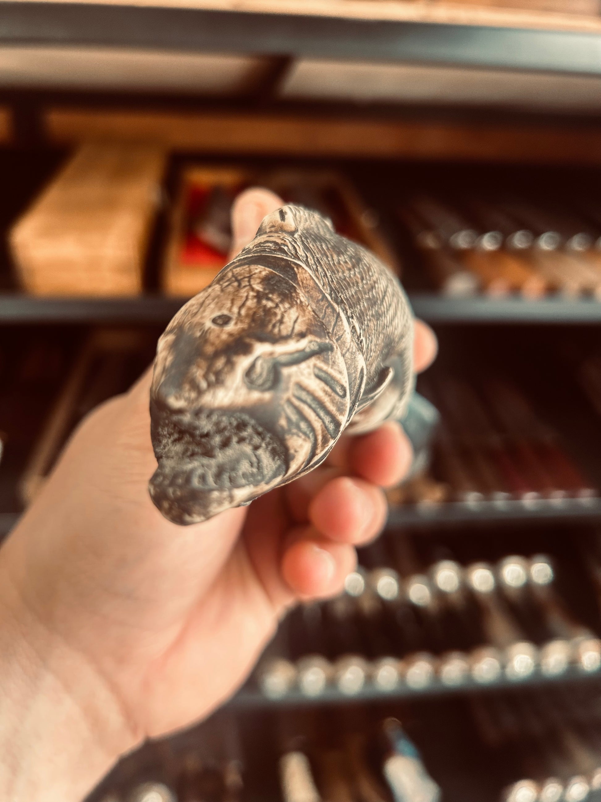 Cuchillos para amantes de la pesca y hinchas de la selección nacional. Hoja en acero inoxidable y mango en resina. Acompaña Vaina.