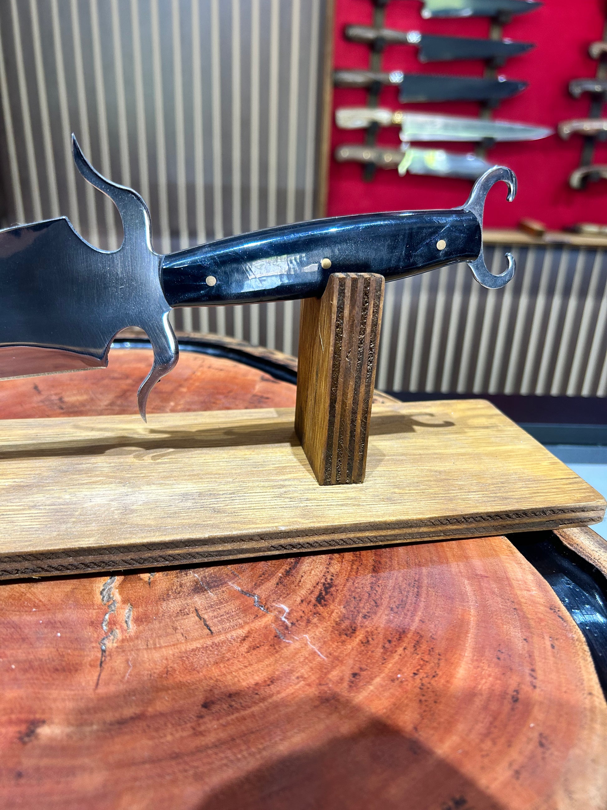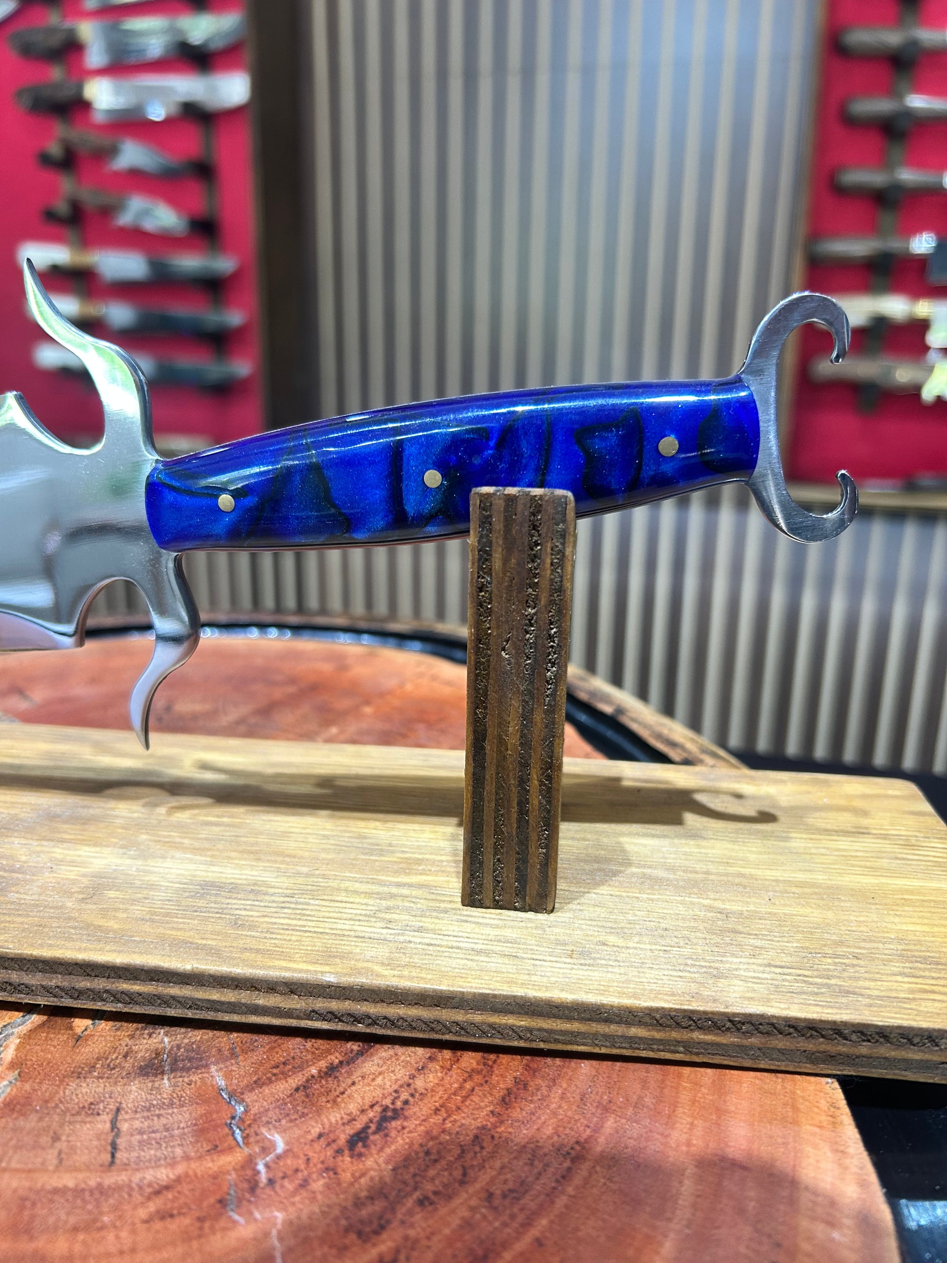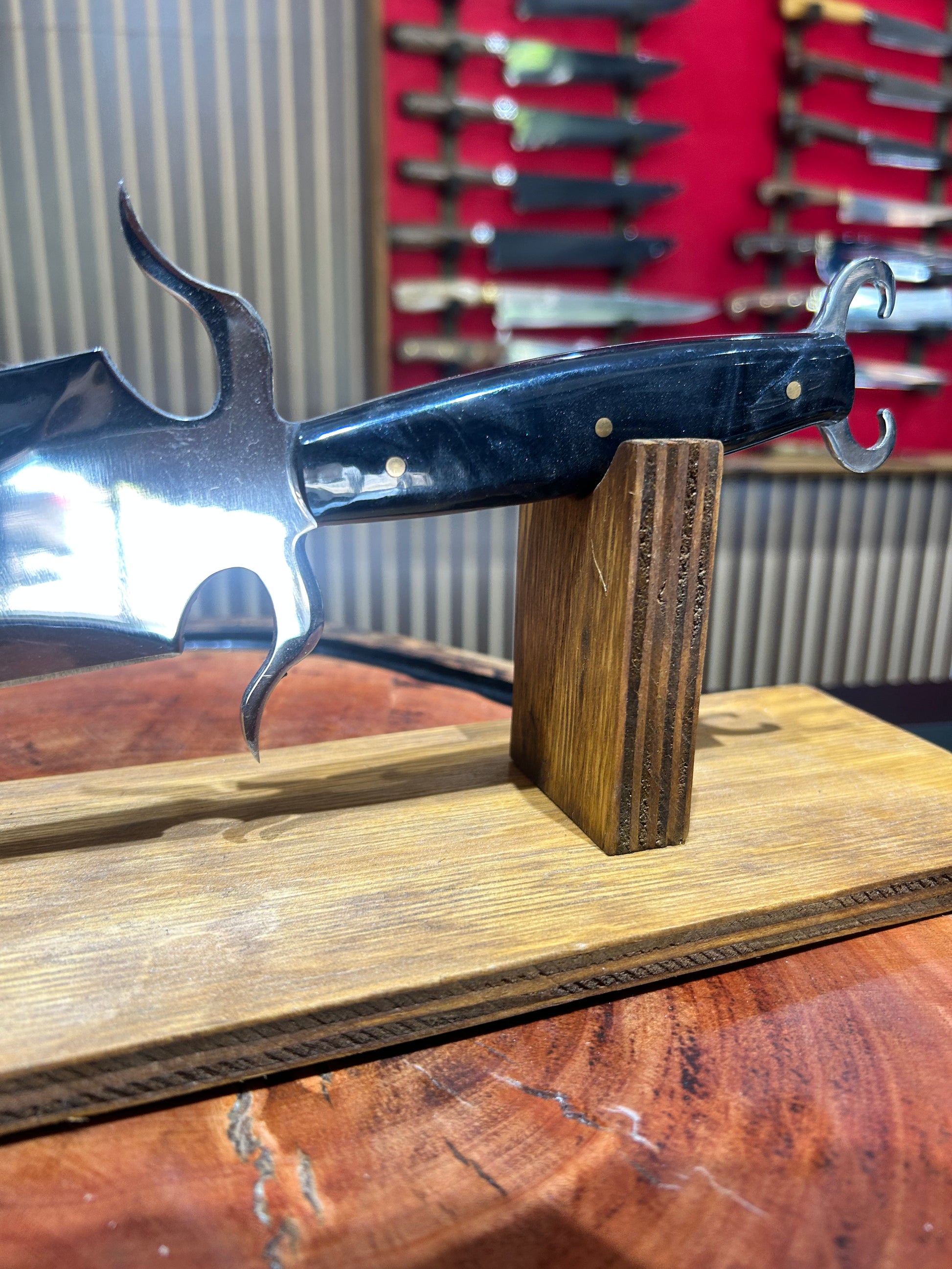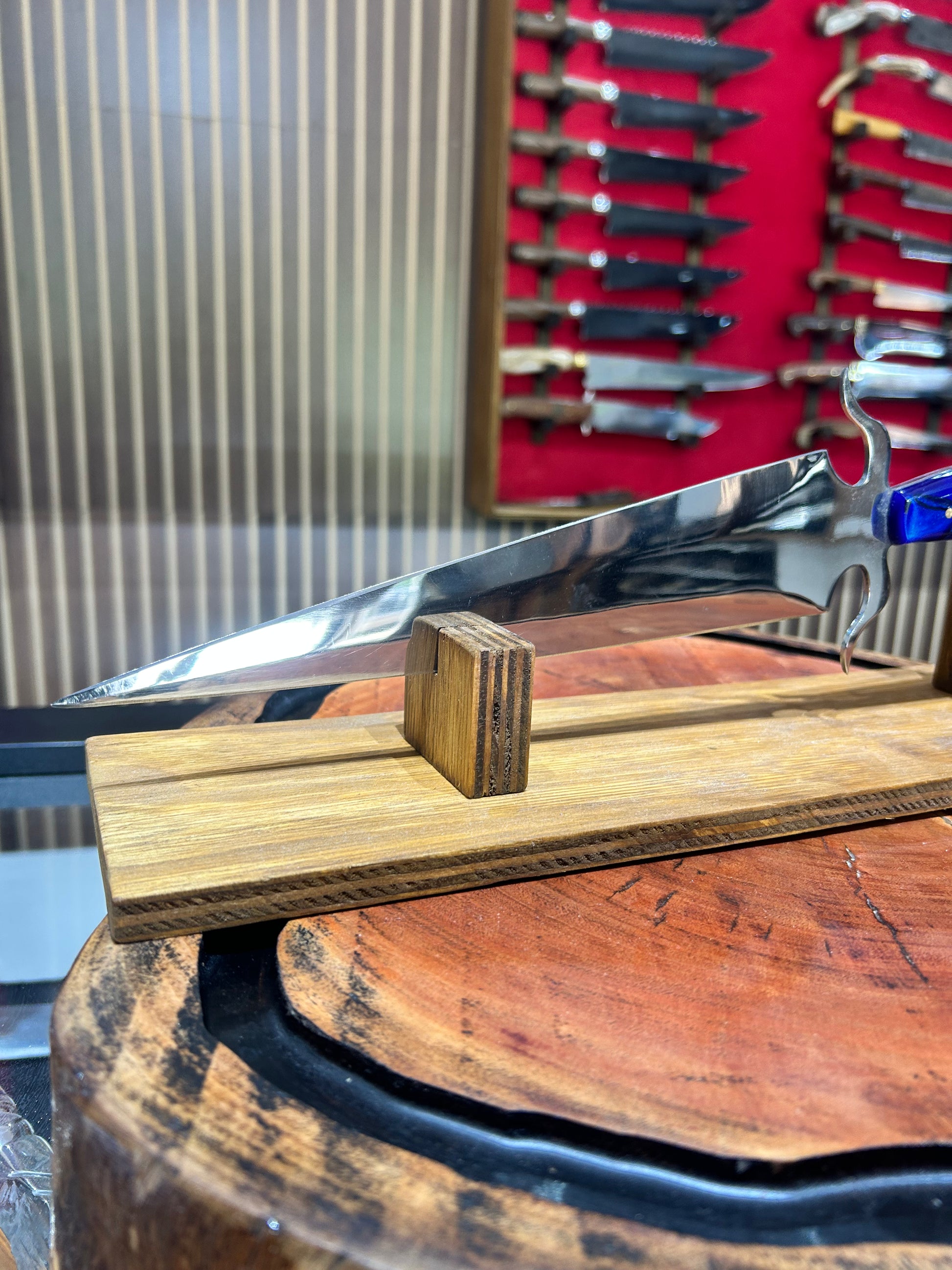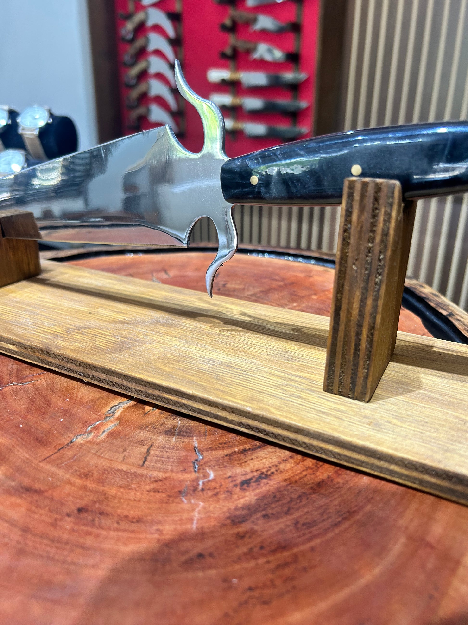 Uma peça imponente para quem busca qualidade e tradição. Esta adaga possui uma lâmina de aço inoxidável de 24 cm, ideal para quem valoriza precisão e durabilidade. Seu cabo plano em acrílico confere um toque autêntico e exclusivo, garantindo uma pegada firme e confortável.