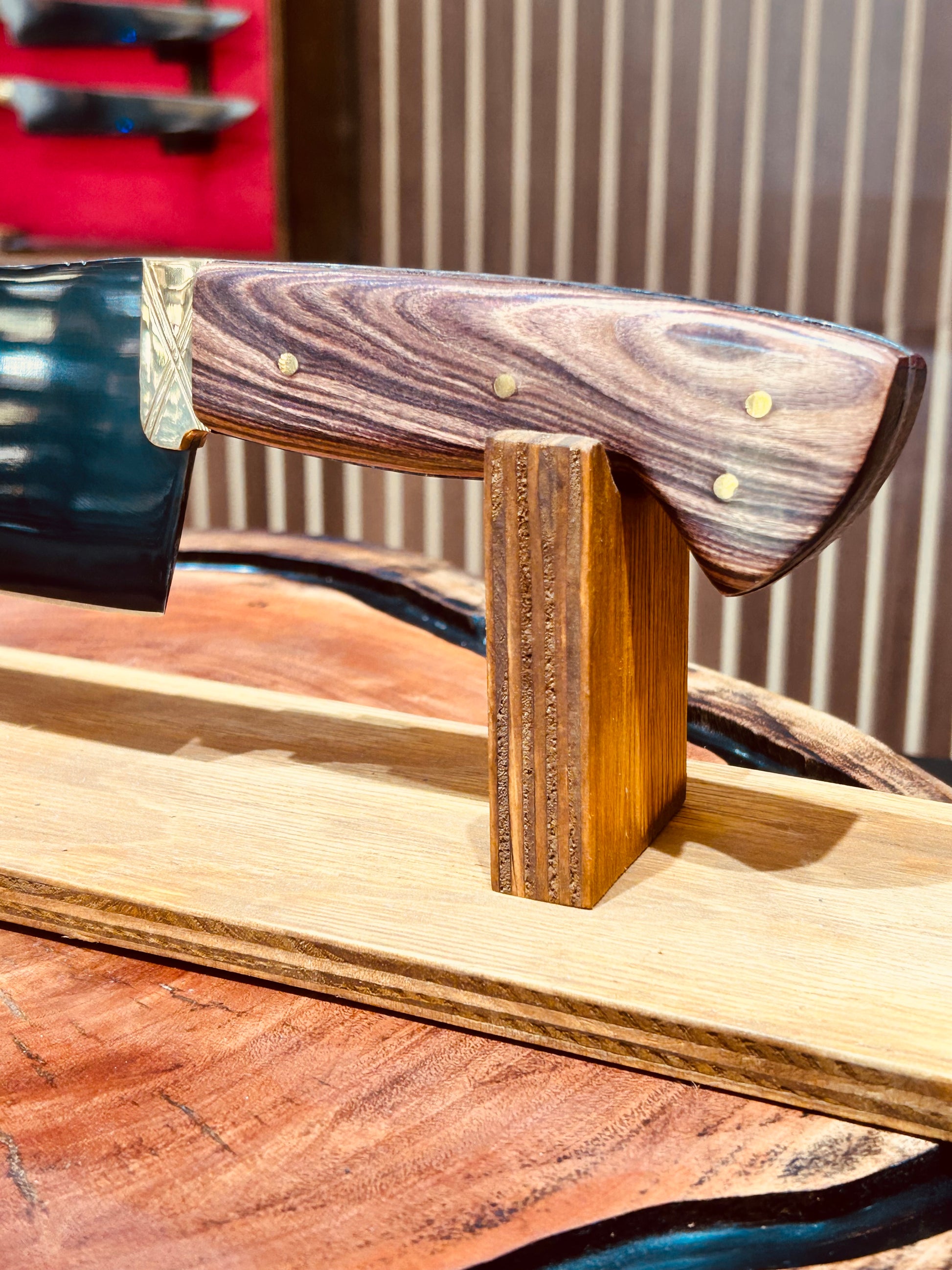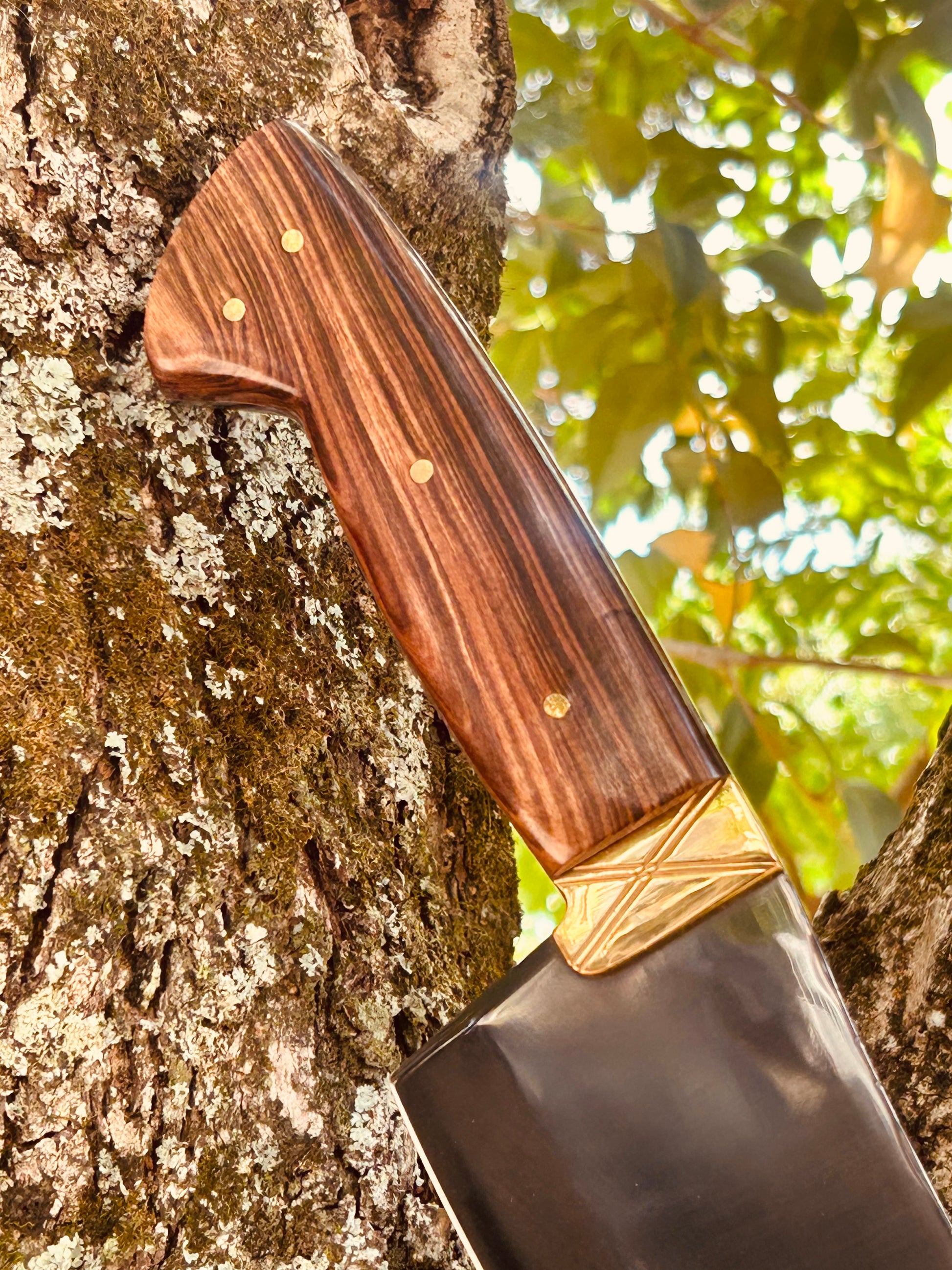 Descubra este machado que elevará sua paixão pelo churrasco e o ajudará a alcançar a perfeição em cada detalhe. Fabricado em aço carbono fosfatizado, com cabo plano em madeira imbuia e um elegante pomo de latão, este machado é uma obra de arte que oferece uma afiação excepcional. Acompanha bainha de couro, pronto para ser seu fiel companheiro em todos os encontros.