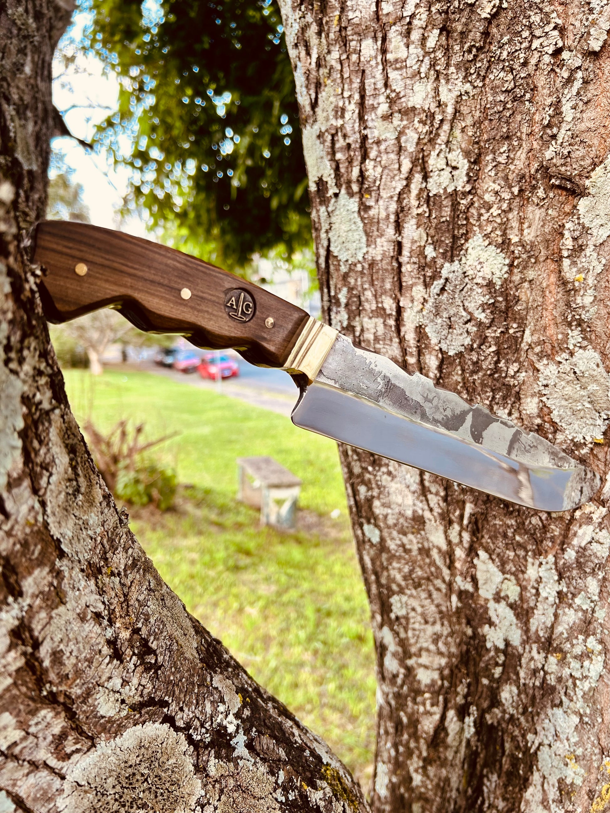 Bestialidad de cuchillo picañero brutal en acero al carbono de 8 mm de espesor, un agarre de fundamento en madera imbuía con moneda de colección Arteygaucho, el cual permite un equilibrio perfecto en la hora del corte. Un cuchillo para amantes de la cuchilleria y reyes de un buen asado. Acompaña vaina en cuero.