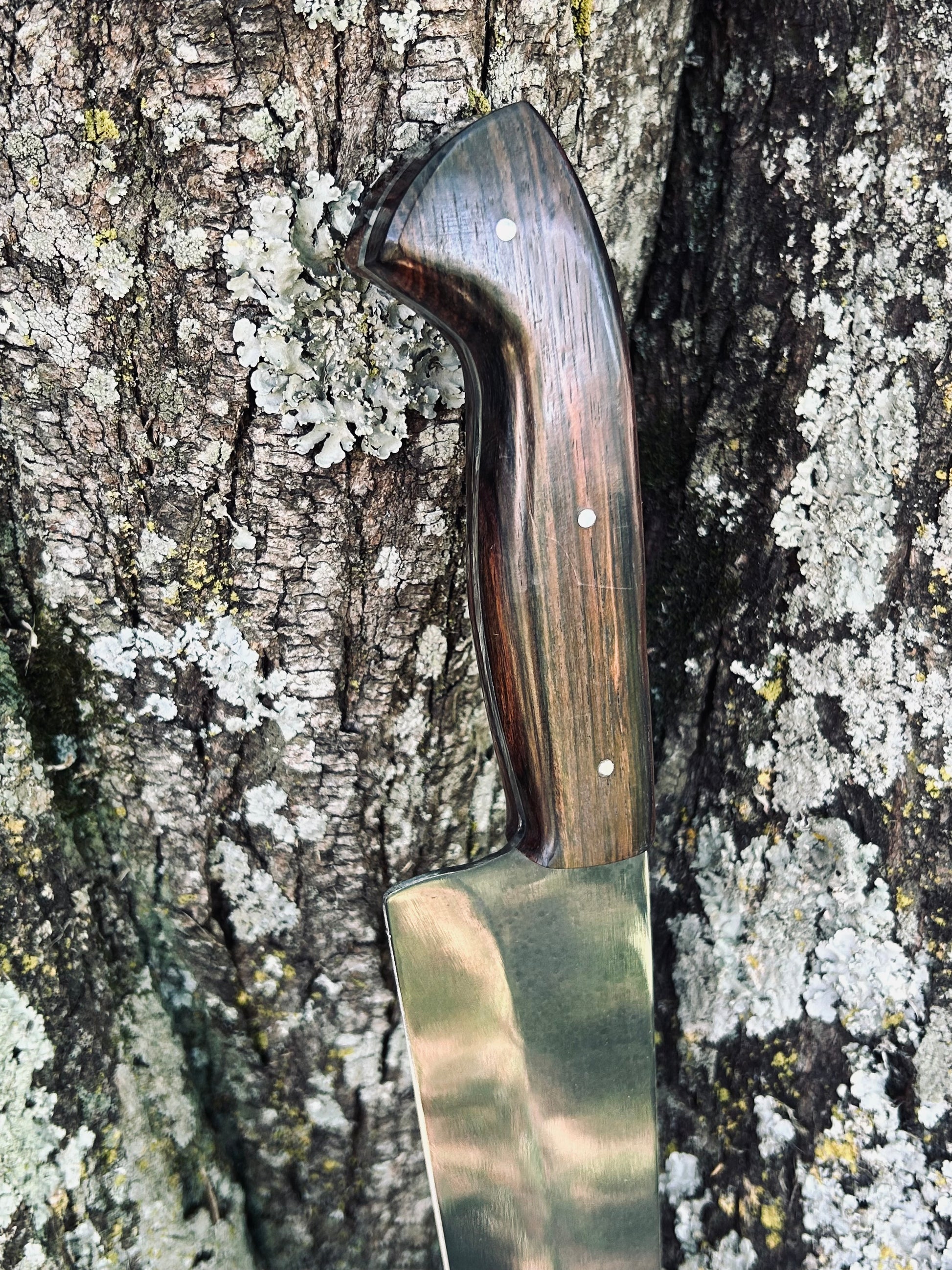 Para vos, que disfrutás de cada asado y valorás la excelencia en cada detalle, te presentamos el cuchillo que va a despertar tu deseo de ser el mejor asador. Fabricado en acero carbono fosfatizado, con un mango chato de madera imbuia y un elegante botón de bronce, este cuchillo no solo es una pieza de arte, sino que también ofrece un filo excepcional. Además, viene acompañado de una vaina de cuero, lista para acompañarte en cada encuentro.