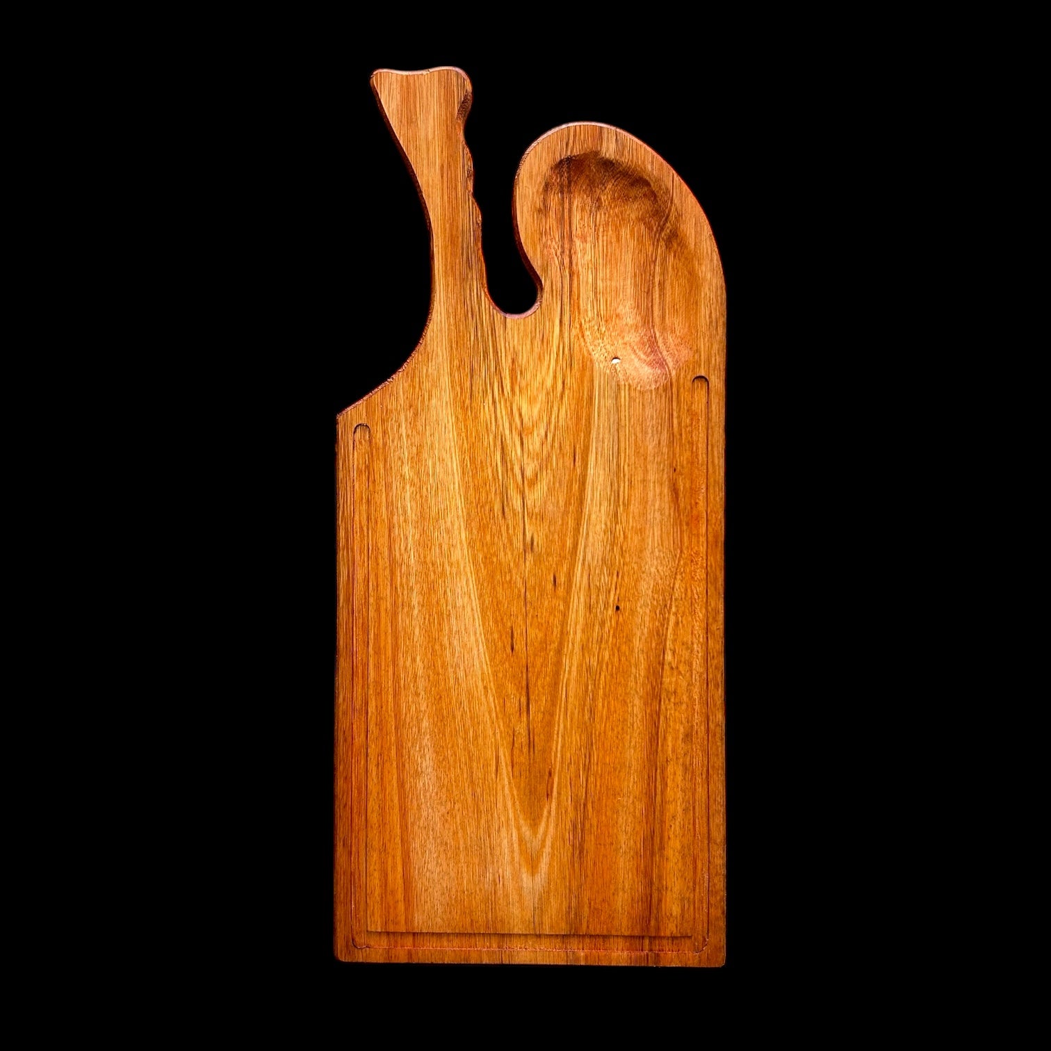 Elaborada en madera eucalipto curada y tratada con aceites minerales. La tabla paleta, te permitirá manipular diversos alimentos en ella, posee un área grande de trabajo y tiene incorporado el sangrador para retener los líquidos de los alimentos.